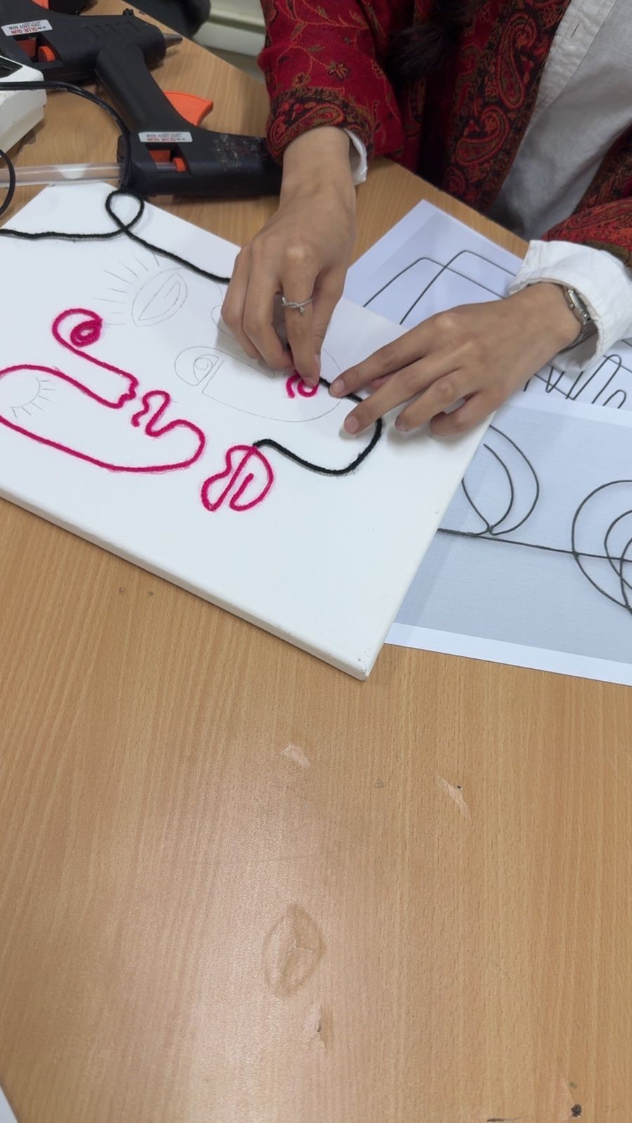 ساهمت الخدمة في تعزيز الحس الفني لدى الطالبات وتنمية مهارات الرسم والتصميم باستخدام أسلوب مبتكر يجمع بين الرسم والخيوط.