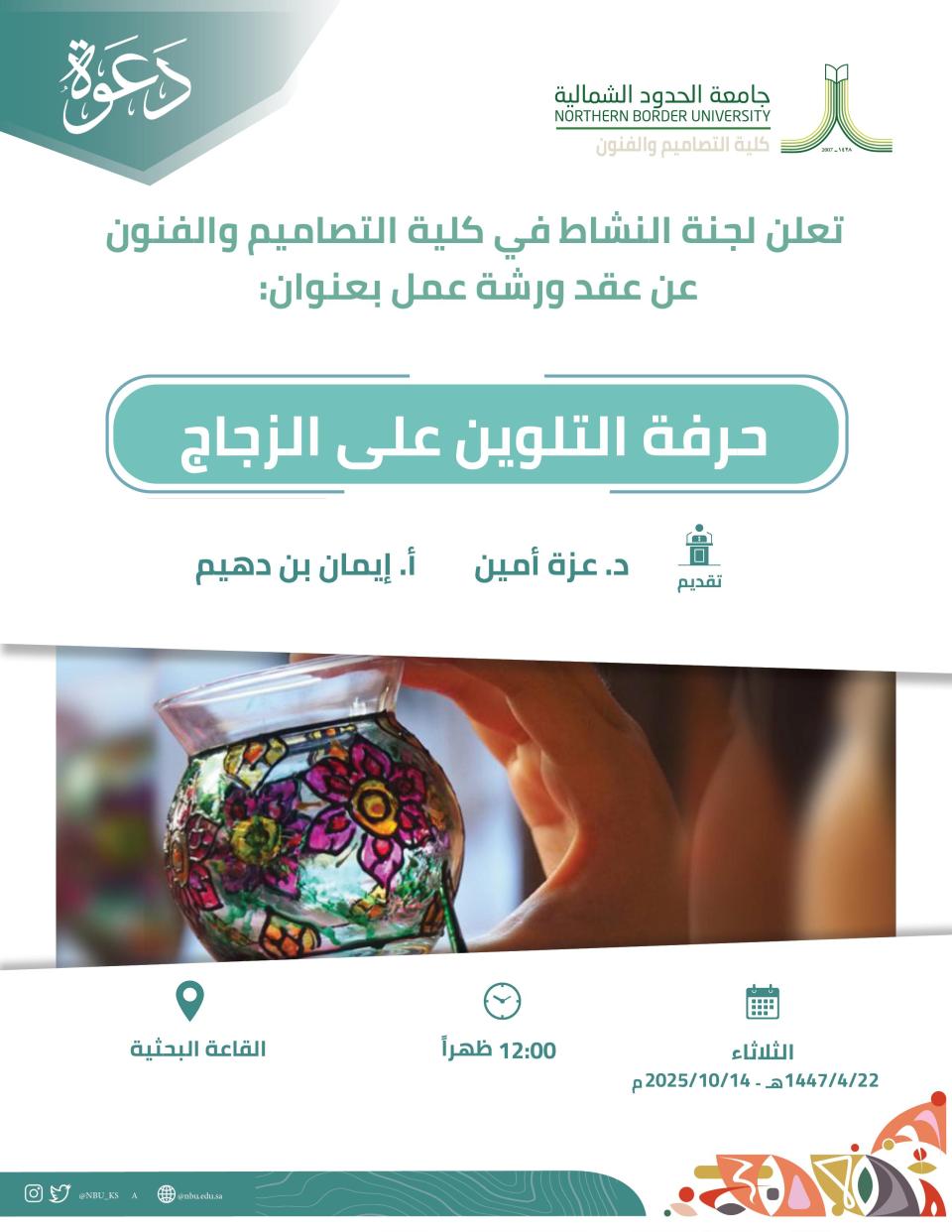 الصورة استمع Print<none>-A A +Aتاريخ أخر تعديل 05 جمادى الأول 1447التقييم PoorNot so poorمتوسطجيدVery goodحفظتاريخ البداية22 ربيع الثاني 1447 12:00 م تاريخ النهاية22 ربيع الثاني 1447 2:00 م بإدارةكلية التصاميم والفنون