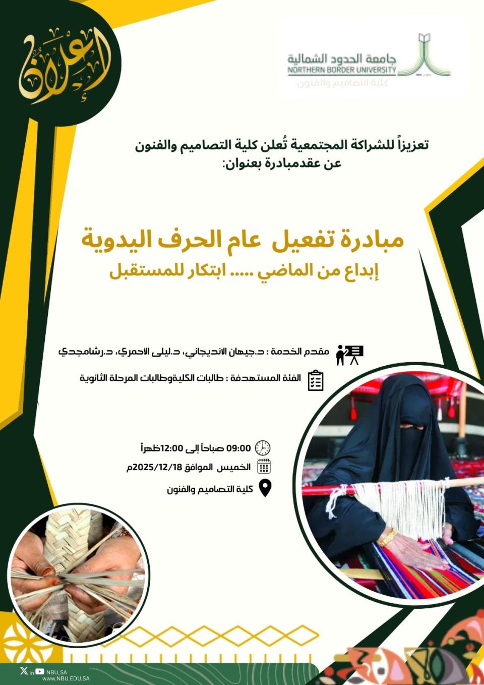 الصورة استمع Print<none>-A A +Aتاريخ أخر تعديل 21 شَعبان 1447التقييم PoorNot so poorمتوسطجيدVery goodحفظتاريخ البداية27 جمادى الآخر 1447 9:00 ص تاريخ النهاية27 جمادى الآخر 1447 12:00 م بإدارةكلية التصاميم والفنون